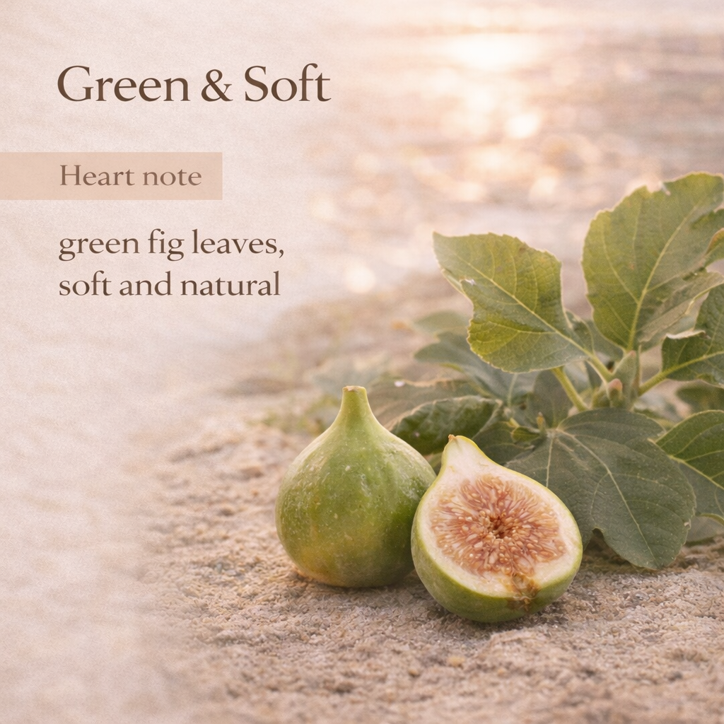 Fresh bergamot meets green fig leaves and warm woods - a fragrance that feels like the last golden hour of a summer day.